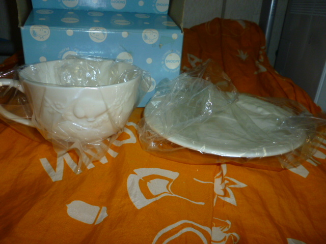 - 未使用 ファミリア スヌーピー カップ&ソーサー エンボス加工風 外箱あり