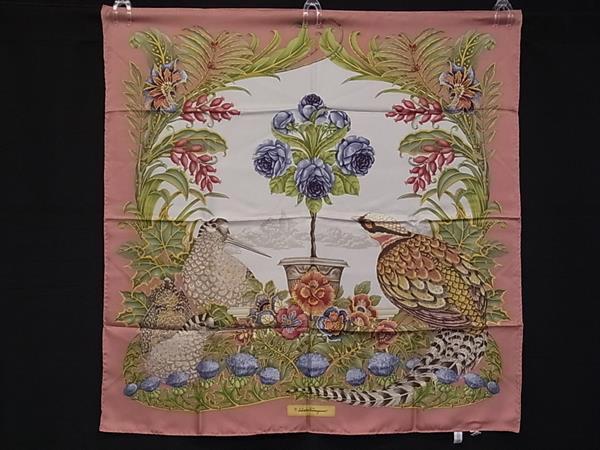 - ■新品同様■ Salvatore Ferragamo フェラガモ シルク100% 大判 スカーフ ストール ショール レディース ピンク系 BP1071