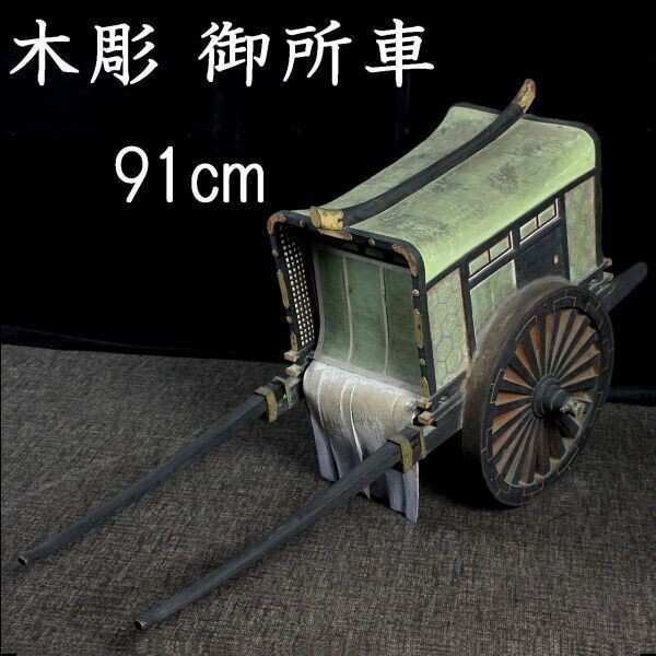 > 【爨】コレクター委託品 木彫 御所車 91cm 細密彫刻 旧家収蔵品 唐物骨董 T[A272.2NIDA]QeT3/23.3廻/GY/(200)