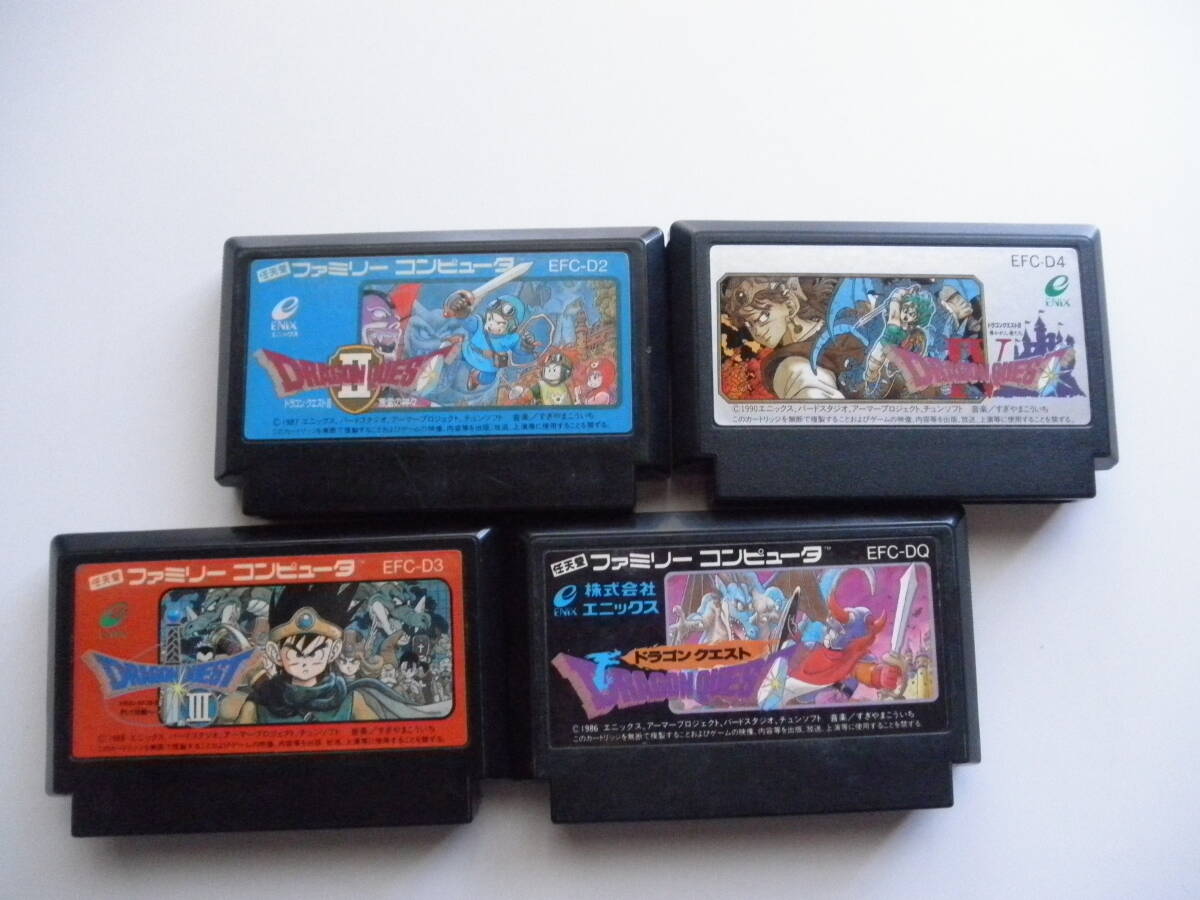 - ●FCソフトセット ドラゴンクエスト(Ⅰ、Ⅱ悪霊の神々、Ⅲそして伝説へ、Ⅳ導かれし者たち) 初期起動確認済