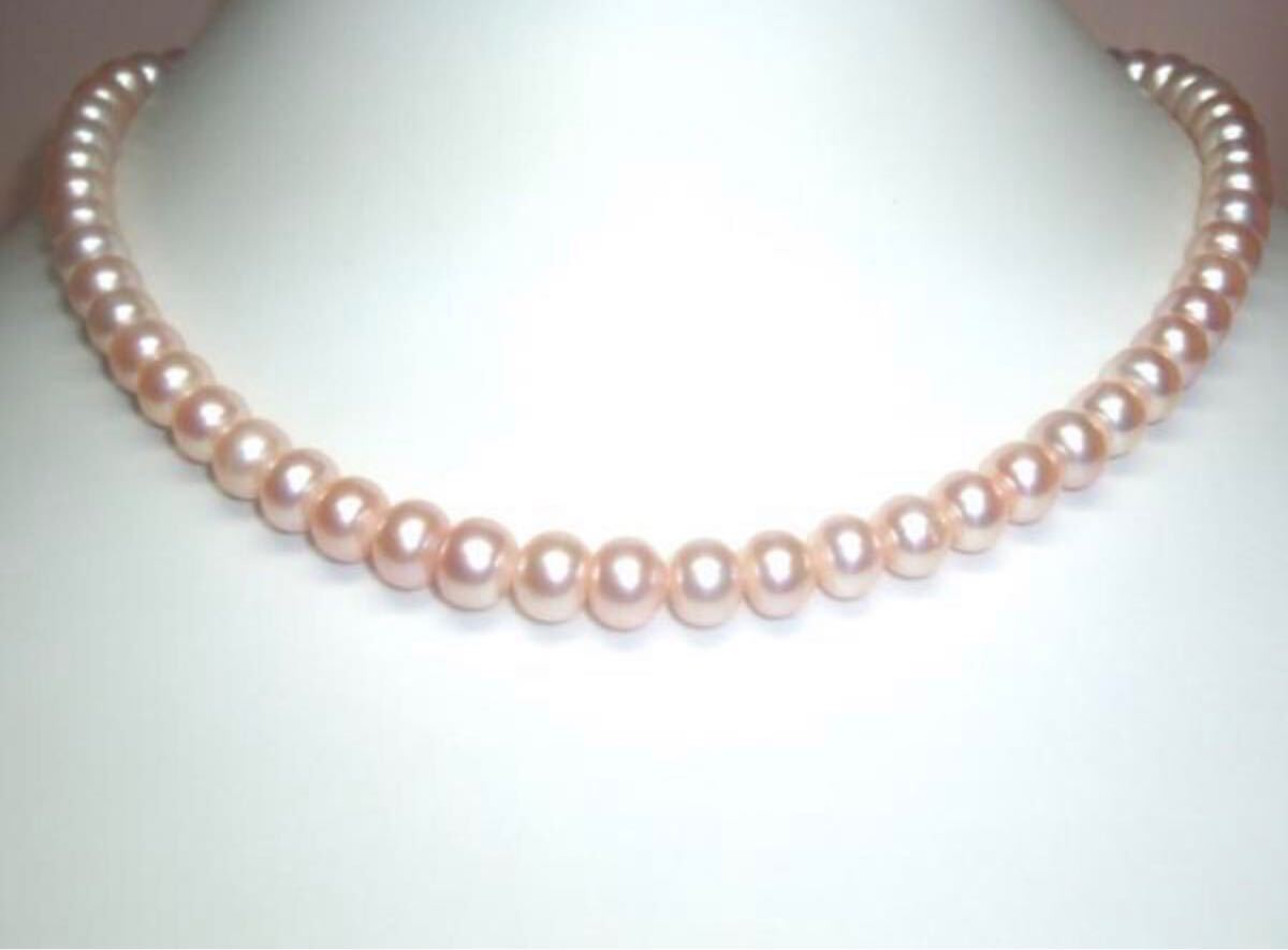 - 【日本製】♪sv607p天然淡水真珠/サーモンピンクパールネックレス♪美しい