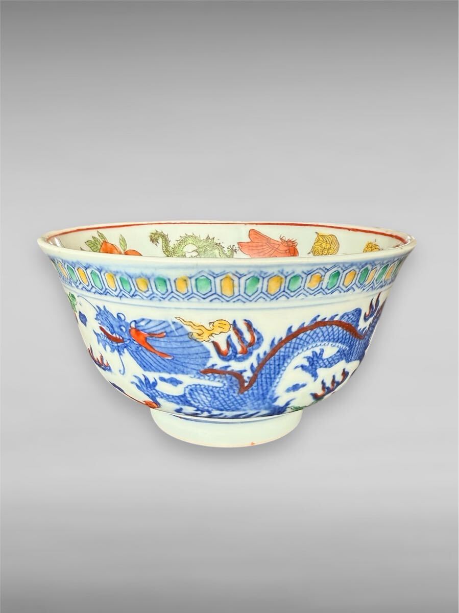 - 【NEOJI】清朝末期 光諸年製 五彩双龍珠紋碗 古陶磁器 骨董品