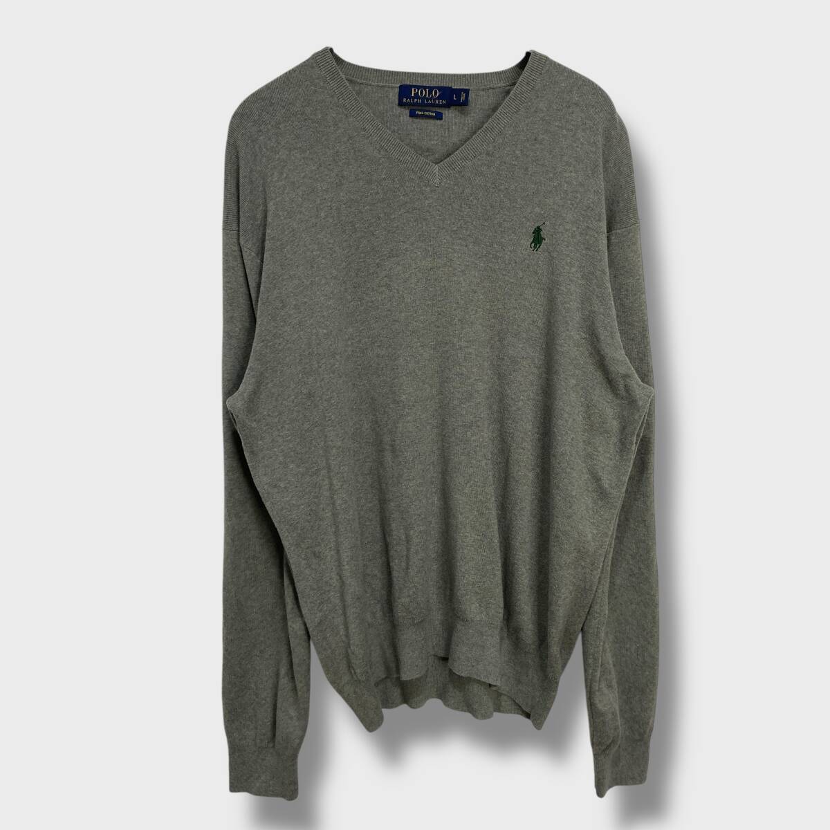 - 送料無料☆ラルフローレン☆Vネックコットンニット☆Vネックセーター☆ポニーマーク☆薄手☆グレー☆L☆E25M