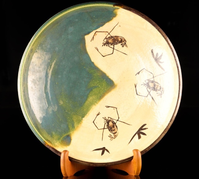 - 本物保証 青織部 海老図大皿 幅47cm 共箱 本物保証返品OK
