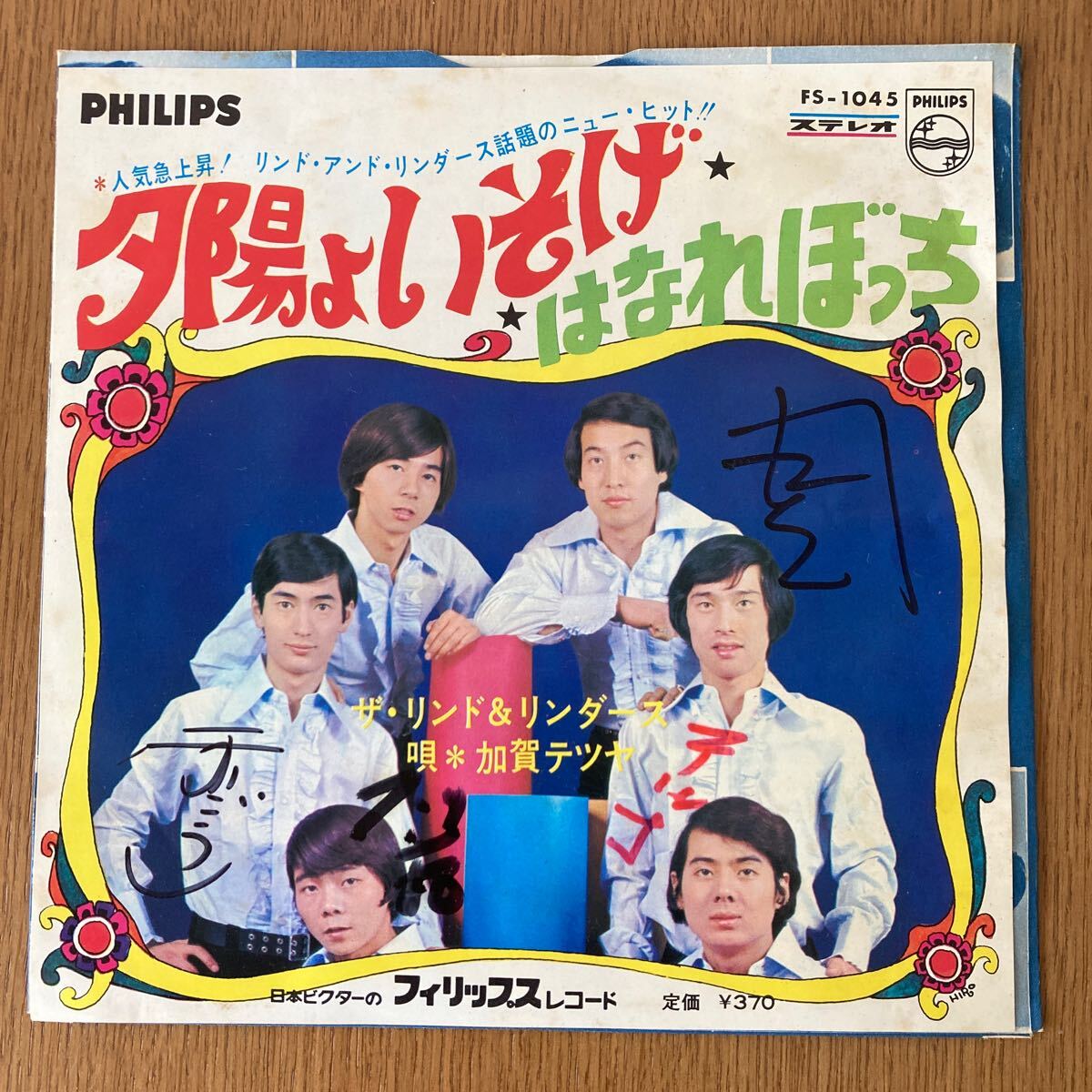 - サイン付き【超希少】ザ リンド & リンダース 加賀テツヤ / 夕陽よいそげ , はなれぼっち / EP レコード