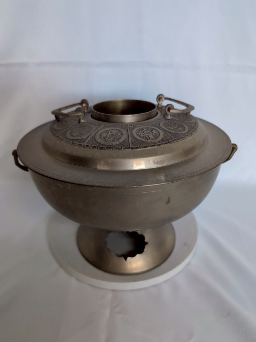 - 9268★ アンティーク 中国十二支 フォンデュ 鍋 火鉢 韓国 直径23.5cm 現状品