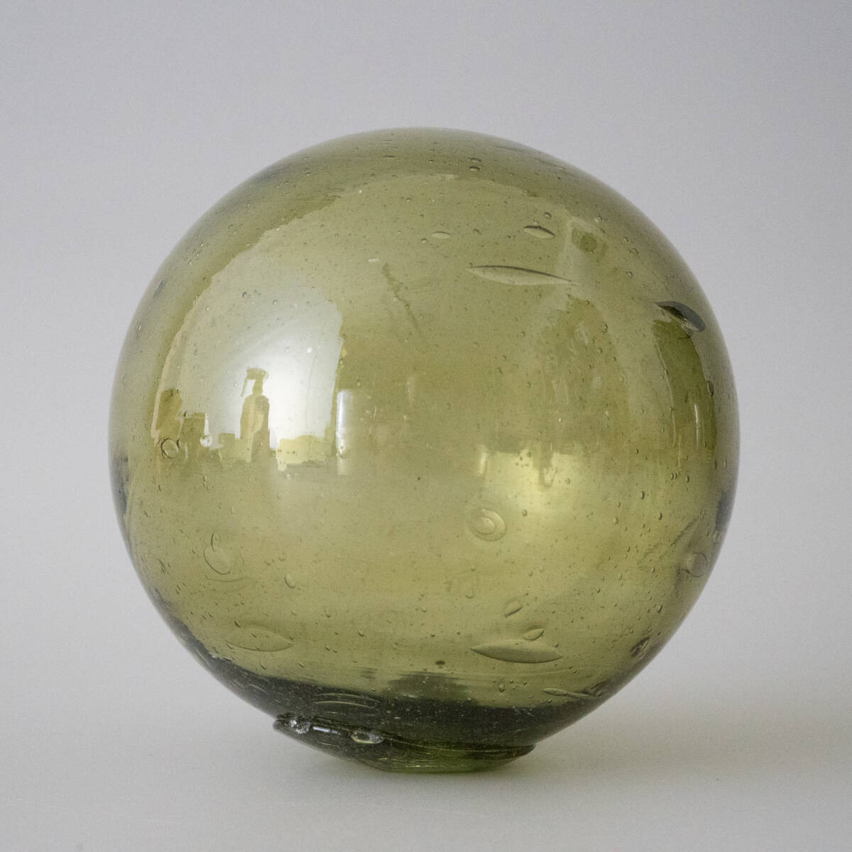 - ガラス球 浮き玉 アンバー 気泡 硝子 浮き球 レトロ アンティーク 当時物 オブジェ 置物