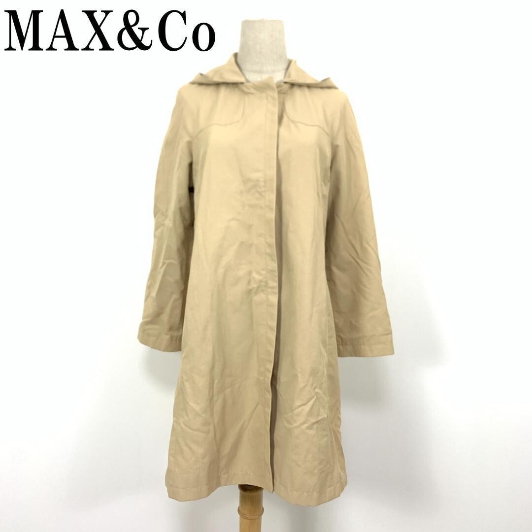 - LA5833 マックスアンドコー ロング ノーカラーコートMAX&Co スプリングコート フード取り外し可能 ステンカラーコート ベージュ 36