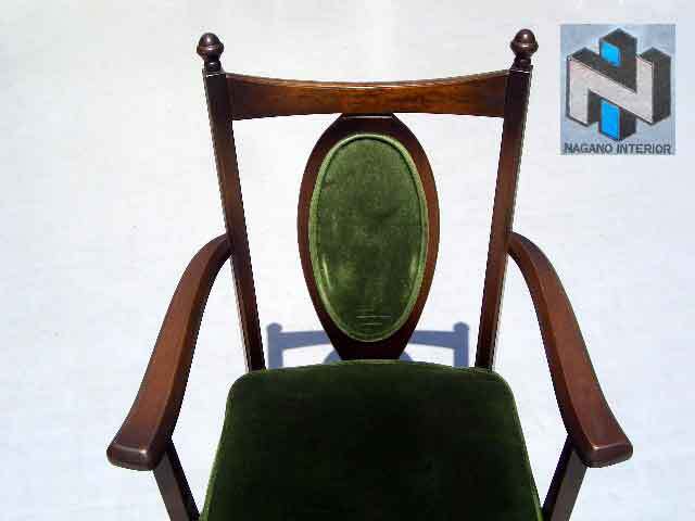 > †70S NAGANO INTERIOR Vintage ナガノインテリア 角椅子 肘掛 アームチェア 昭和レトロ 和洋折衷 モダニズム 匠 老舗 家具職人 廃盤 希少
