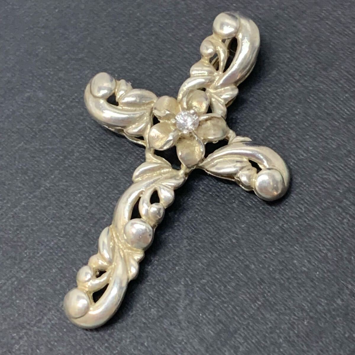 - シルバー925 クロス 十字架 花 フラワー モチーフ チャーム ペンダントトップ
