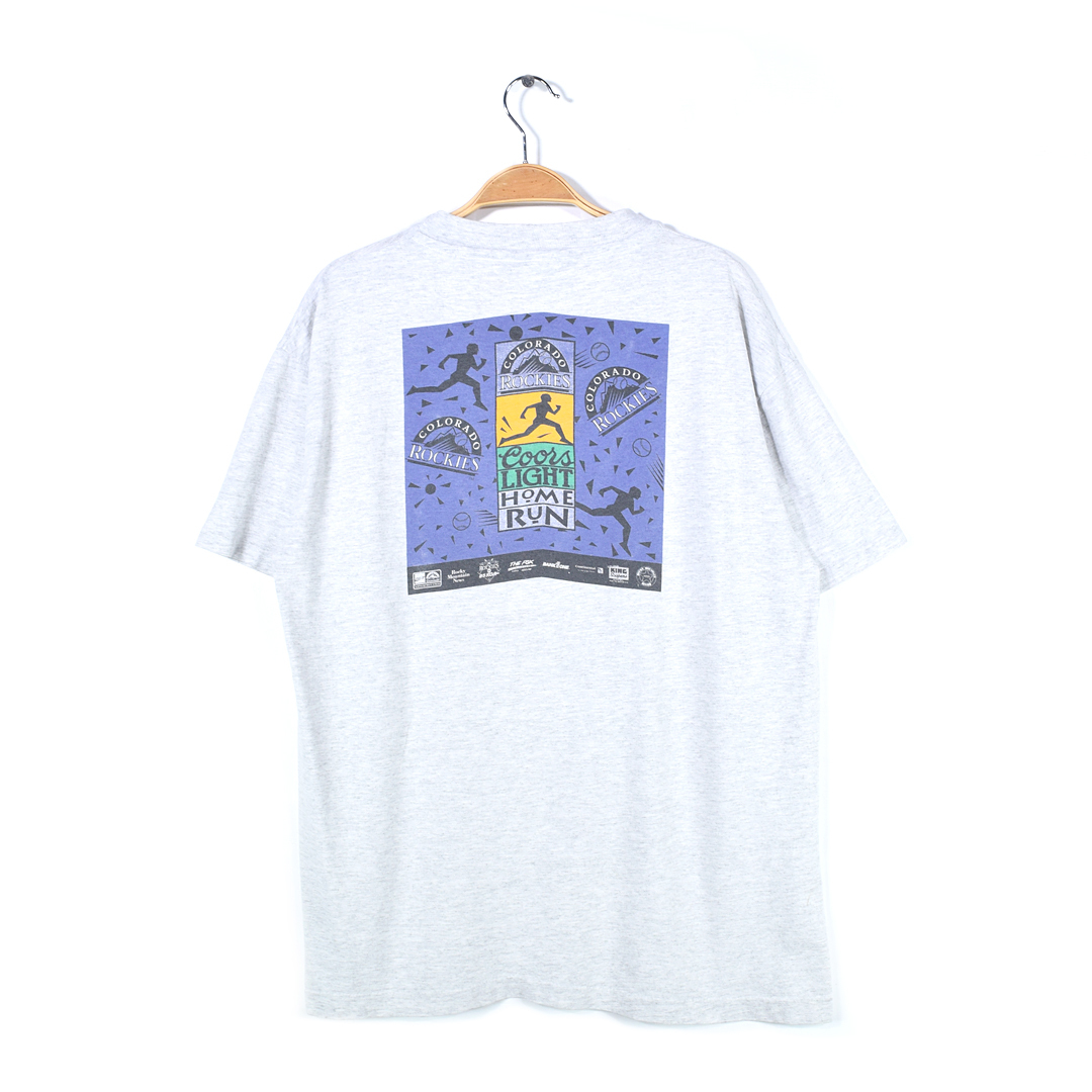 - 【送料無料】90s MLB コロラドロッキーズ クアーズライト USA製 ヴィンテージTシャツ マラソン大会 袖裾シングルステッチ ANVIL L @BZ0398