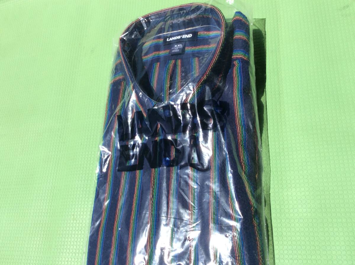 - LANS END コットンシアサッカーシャツ半袖 XXLディープシー レインボーストライプ