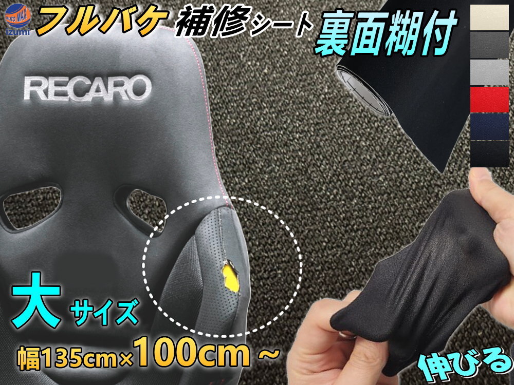 > フルバケ補修用シート (大) 黒 幅135cm×1m~ 裏面糊付き バケットシート フルバケットシート 修理 生地 布地 破れ 穴 傷隠 7
