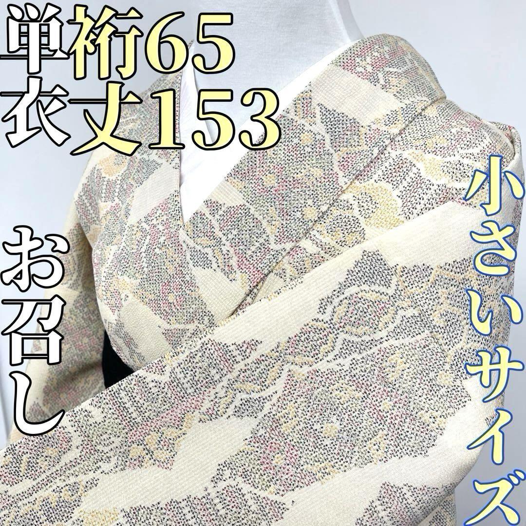- 【着物と帯 時流】ヒ25674◆正絹 単衣 お召し◆小さいサイズ クリーム 美品