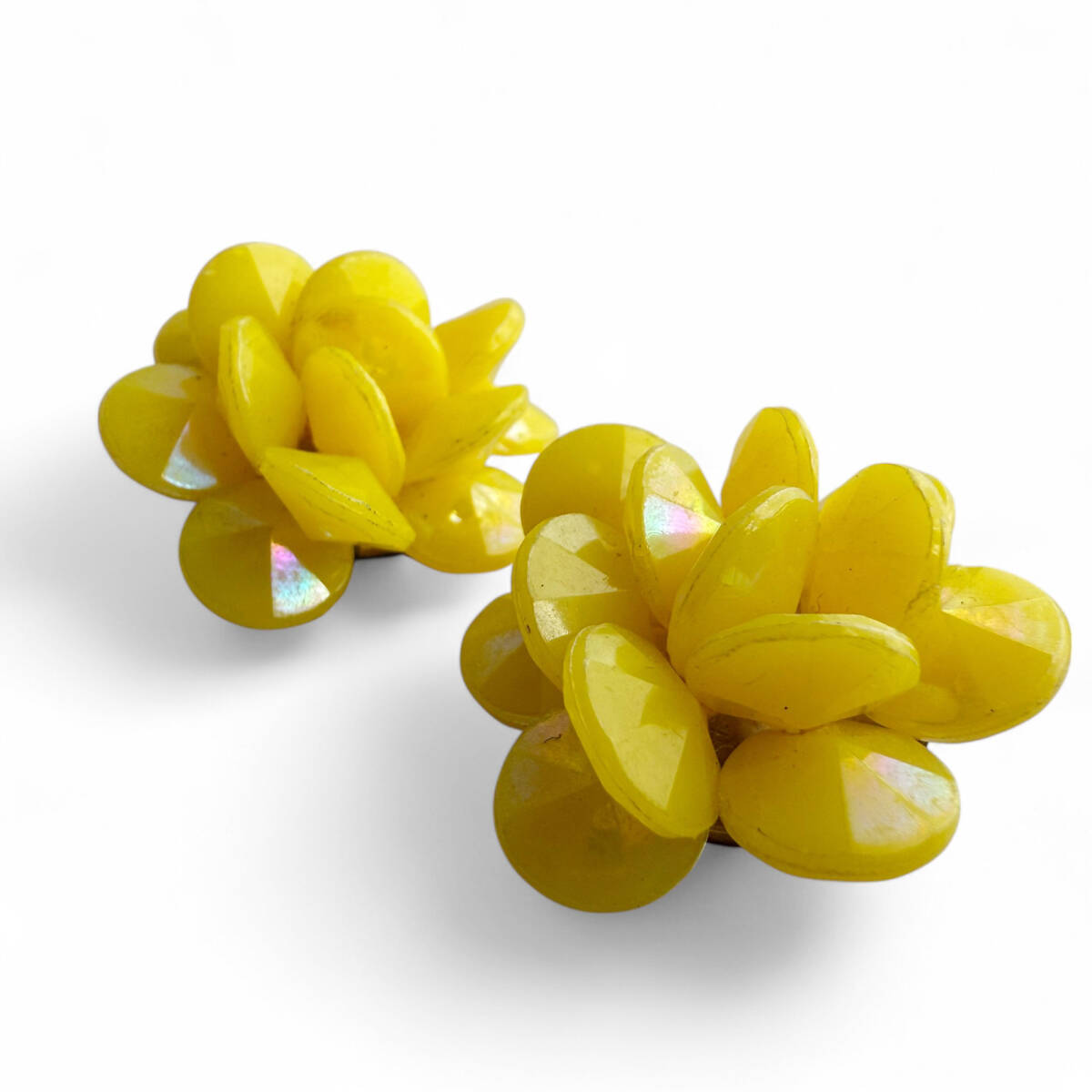 - N7-650 ヴィンテージ MADE AUSTRIA イヤリング イエロー ビーズ アクセサリー クリップ式 レトロ