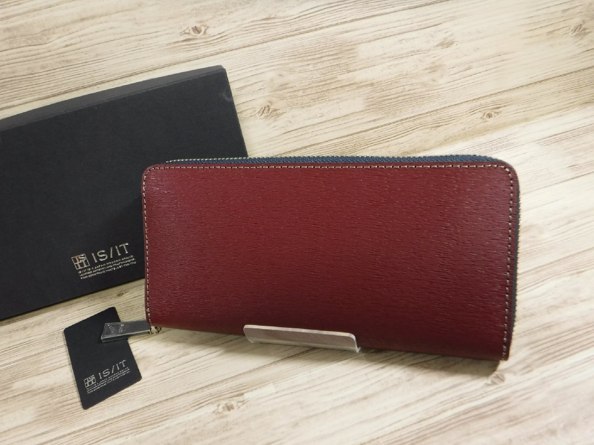 - QQ268 イズイット 定価1万5400円 新品 ラウンドファスナー長財布 ワイン タンニン牛革 IS/IT 971606 フジタカ製造 イケテイ製 IKETEI