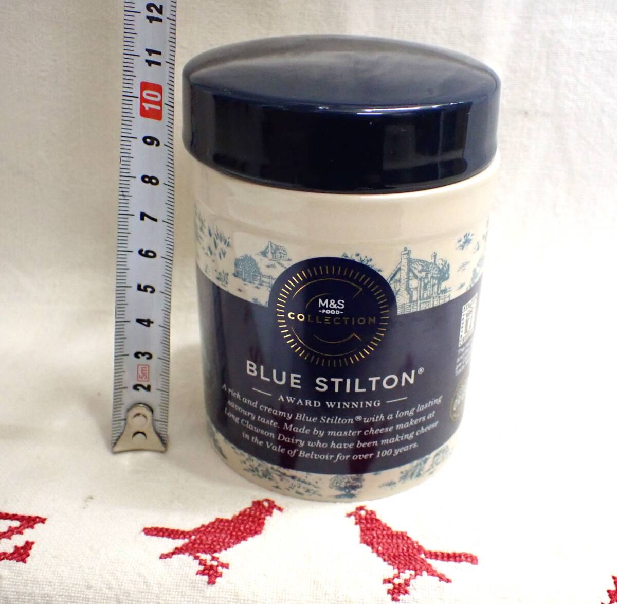 - 英国 ブルースティルトン容器 イギリス小物 M&S FOOD BLUE STILTON 陶器 イギリス トワルドジュイ 容器 キッチン チーズ 保存容器