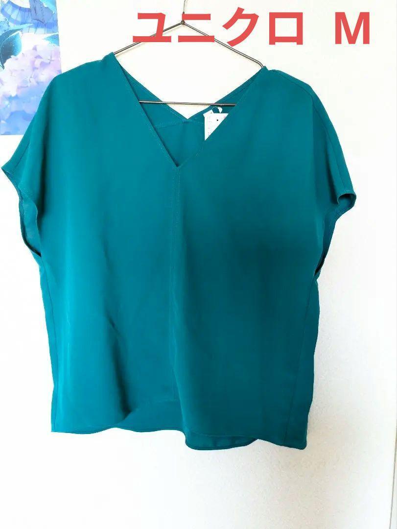 - 値下げ【新品】ユニクロ ドレープ Vネックブラウス★グリーン★M