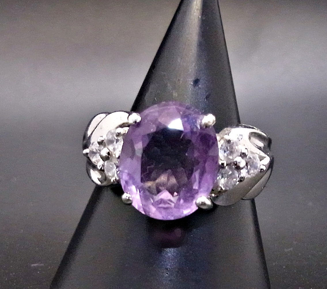 - ▲カラーストーン☆リング☆指輪☆アメジスト系☆15号☆キラキラ☆レディース☆アクセサリー管51172805
