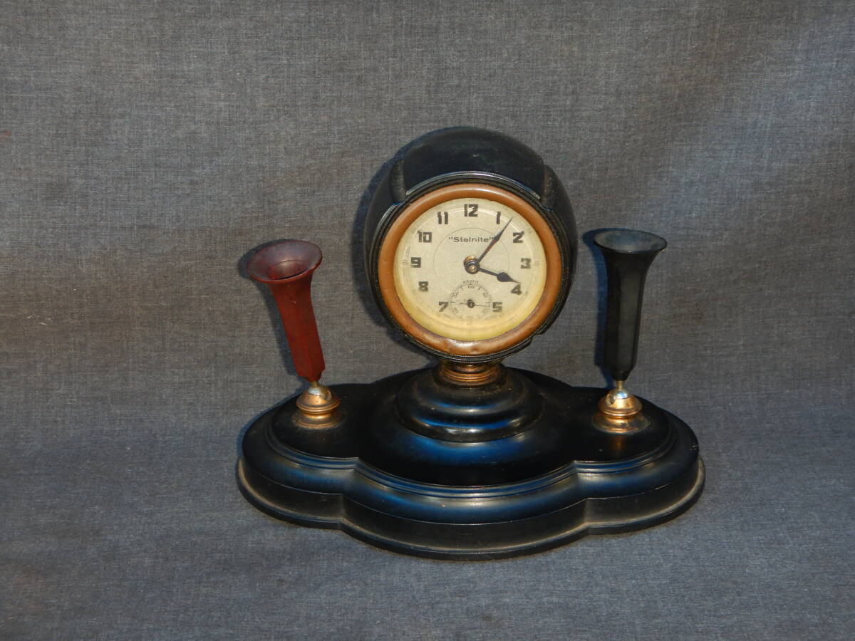 - アンティーク ドイツ製 STEINITE/スタイナイト 機械式置時計 ベークライト 手巻き置時計 秒針付き 置き時計 ペン立て ペン挿し