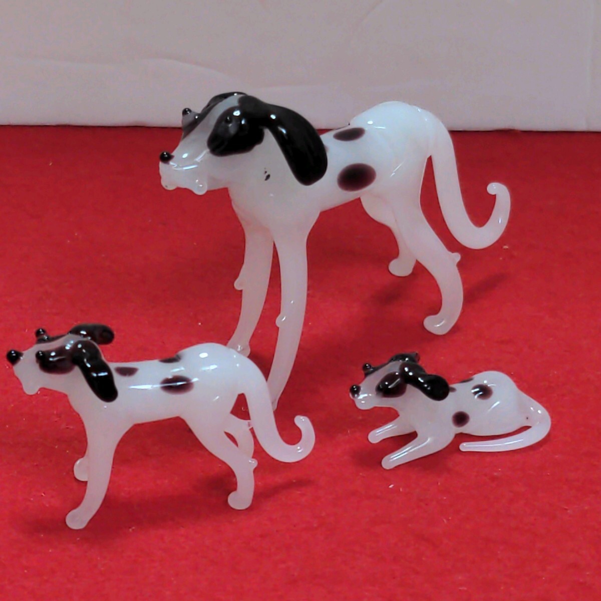 > 3点★ミニチュア ガラス細工 ★ダルメシアン 置物 インテリア オブジェ Dog アンティーク 犬 ドッグ