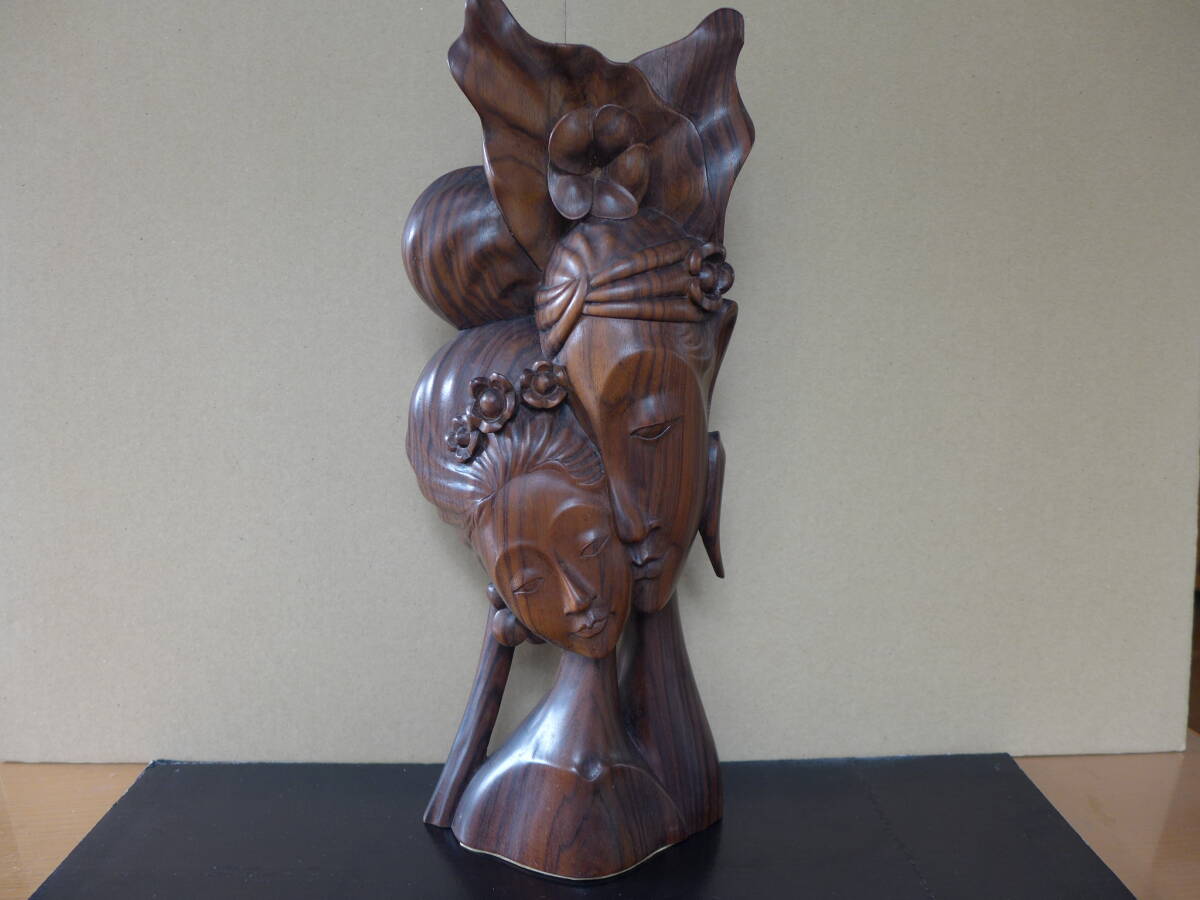 > ★ 時代物 インドネシア? 木彫一刀彫り 女性親子像 33.5cm オブジェ 置物 木彫アート インテリア 黒檀製 ★
