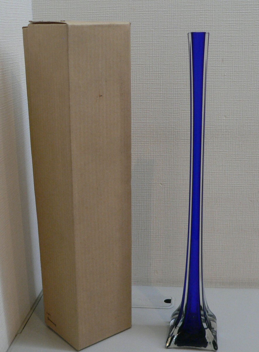 - 【37956J】●未使用保管品 花瓶 ガラス 青 細長い 一輪挿し サイズ高さ約50㎝ 横約6㎝