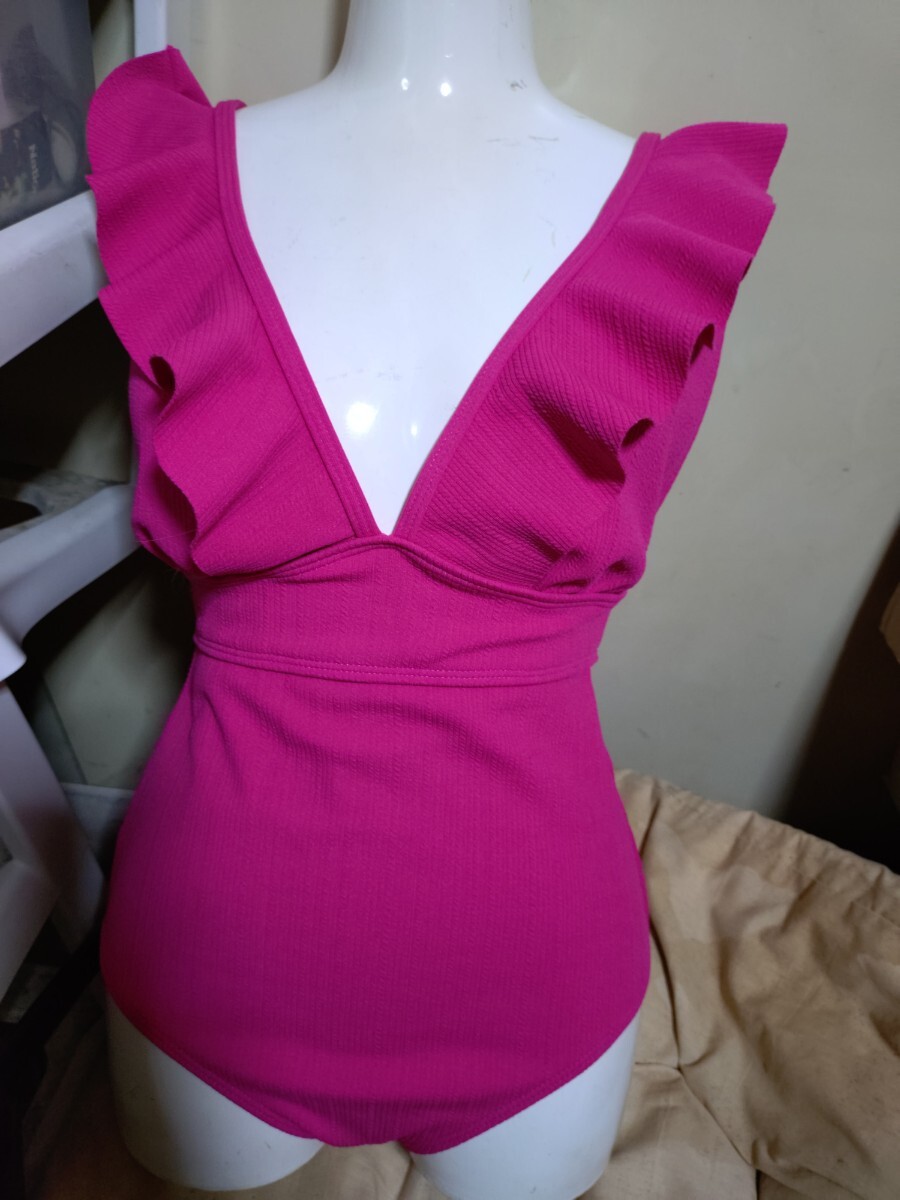- M4106◆中国製◆フリル付き◆キュートなピンク系ワンピース水着◆7S