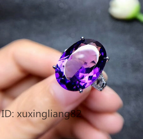 - 極美 エレガント 指輪 レディース 大粒 アメジスト キラキラ リング アクセサリー フリーサイズ