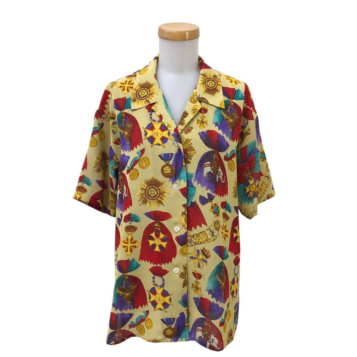 > Nm305-66 EVA DONNA エヴァドンナ ONWARD 総柄 オープンカラー 半袖 シャツ ブラウス トップス イエロー系 レディース 9