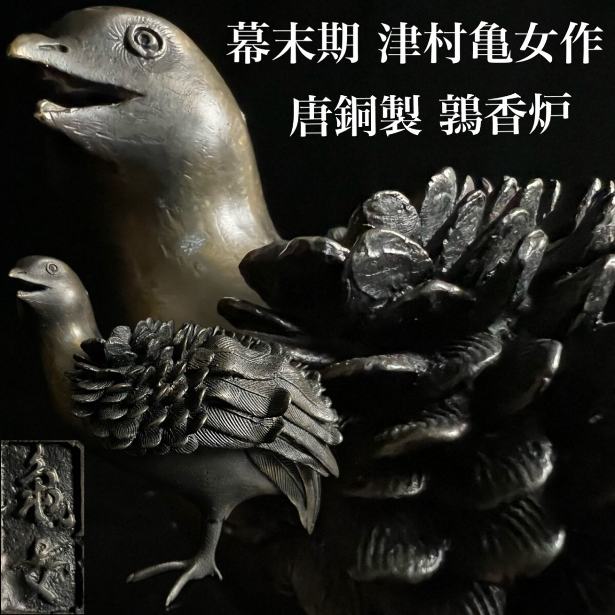 > ◇鸛◇ 古美術品 時代 津村亀女 古銅製 鶉香炉 14.5cm 1017g 細密彫刻 鋳銅彫金 香道具 金属工芸 唐物骨董