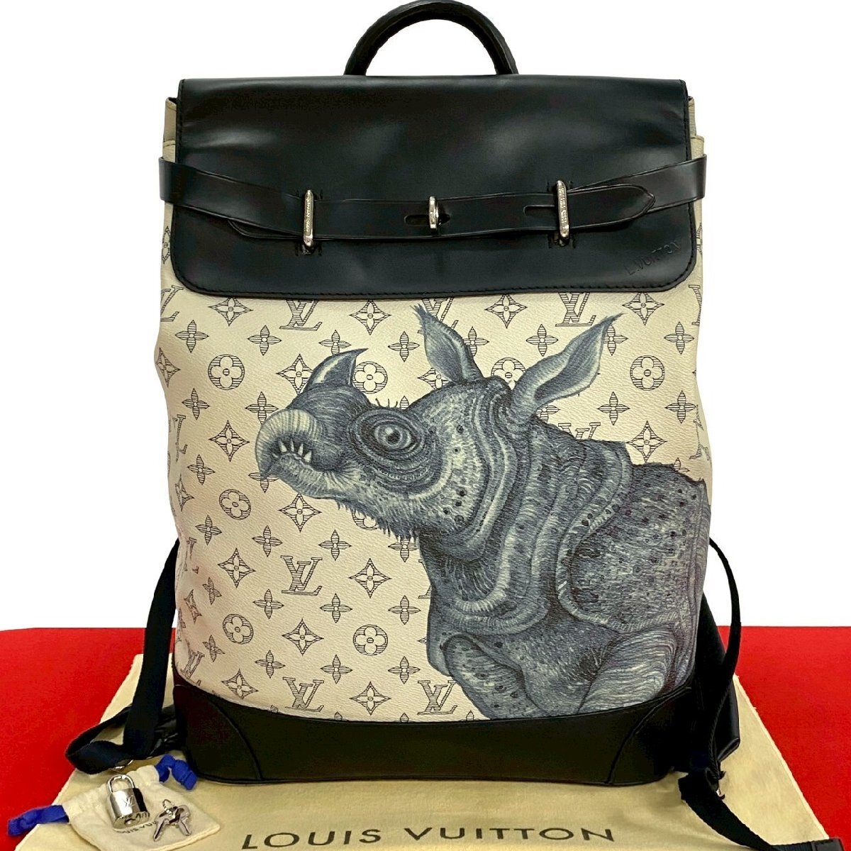 > 極 美品 LOUIS VUITTON ルイヴィトン モノグラムサバンナ スティーマー レザー リュックサック バックパック ネイビー ホワイト 178-1
