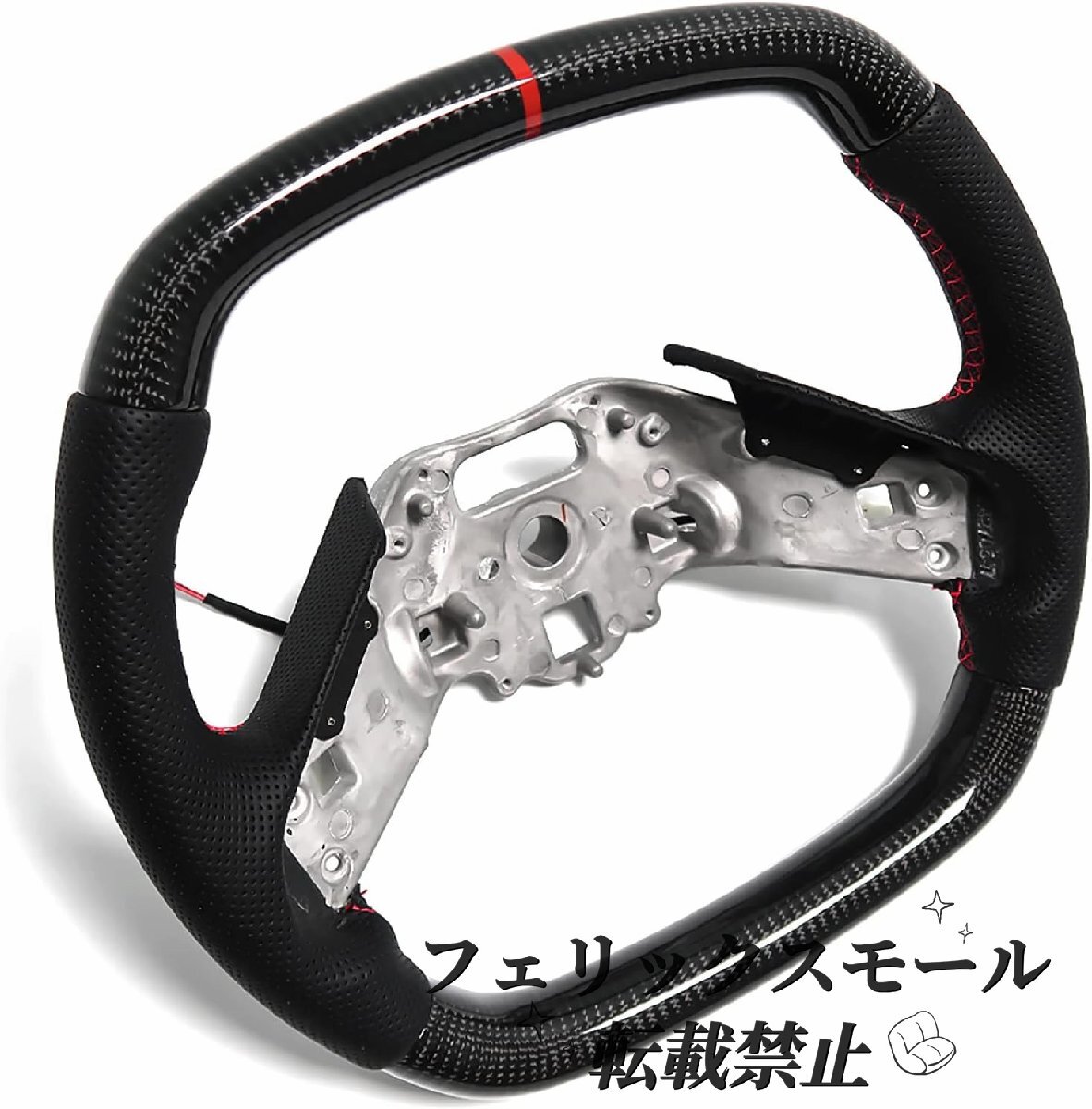 > カーカスタマイズ カーボンファイバー ステアリングホイール C8 コルベット 2020-2023用 D型 平底 プレフォールド レザー グリップ