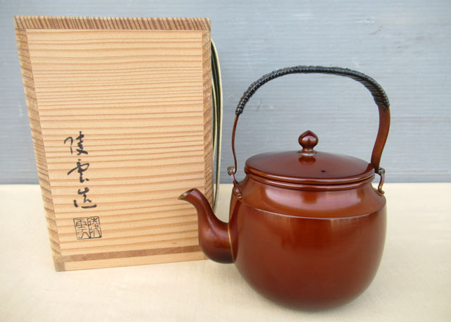 - 即決■陵雲 湯沸 唐物写 銅製 木箱入り■煎茶道具 水注 薬缶 そ-48