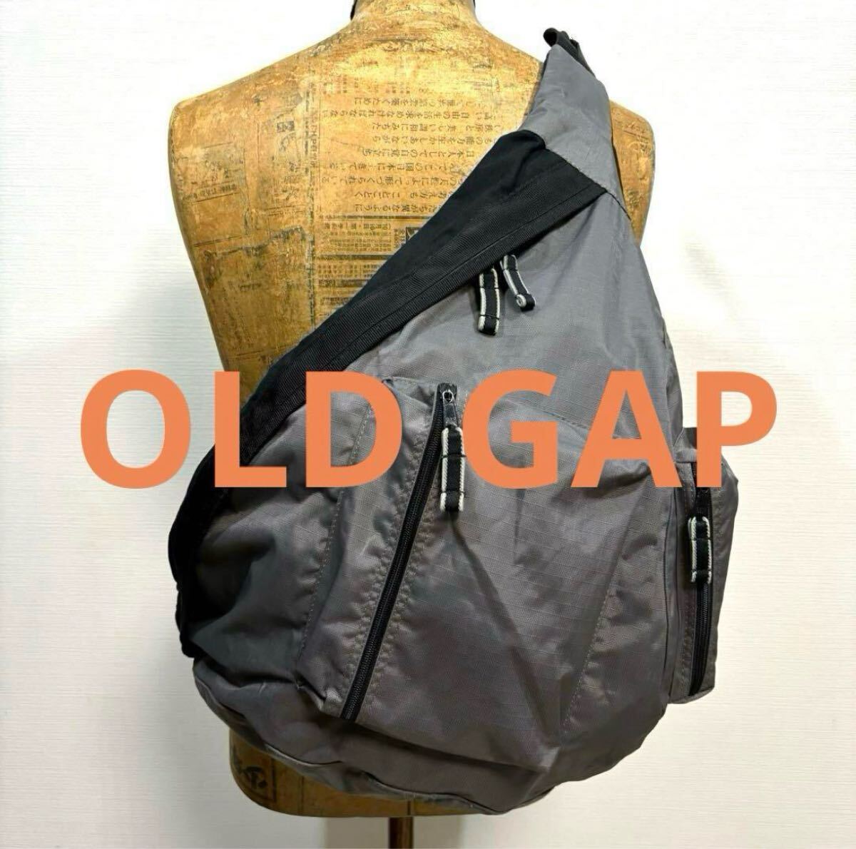 - 大型 良品 OLD GAP オールドギャップ ワンショルダーバッグ グレー y2k アーカイブ スリング ボディーバッグ 古着 肩掛け 斜め 00s 本革