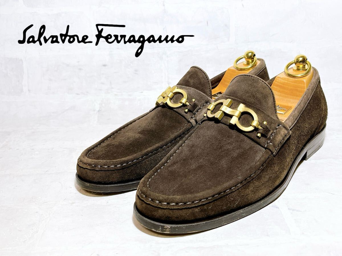 > イタリア製【極美品】サルヴァトーレフェラガモ 高級 ガンチーニ ビットローファー スエード 茶 US7EE(約25cm)メンズ