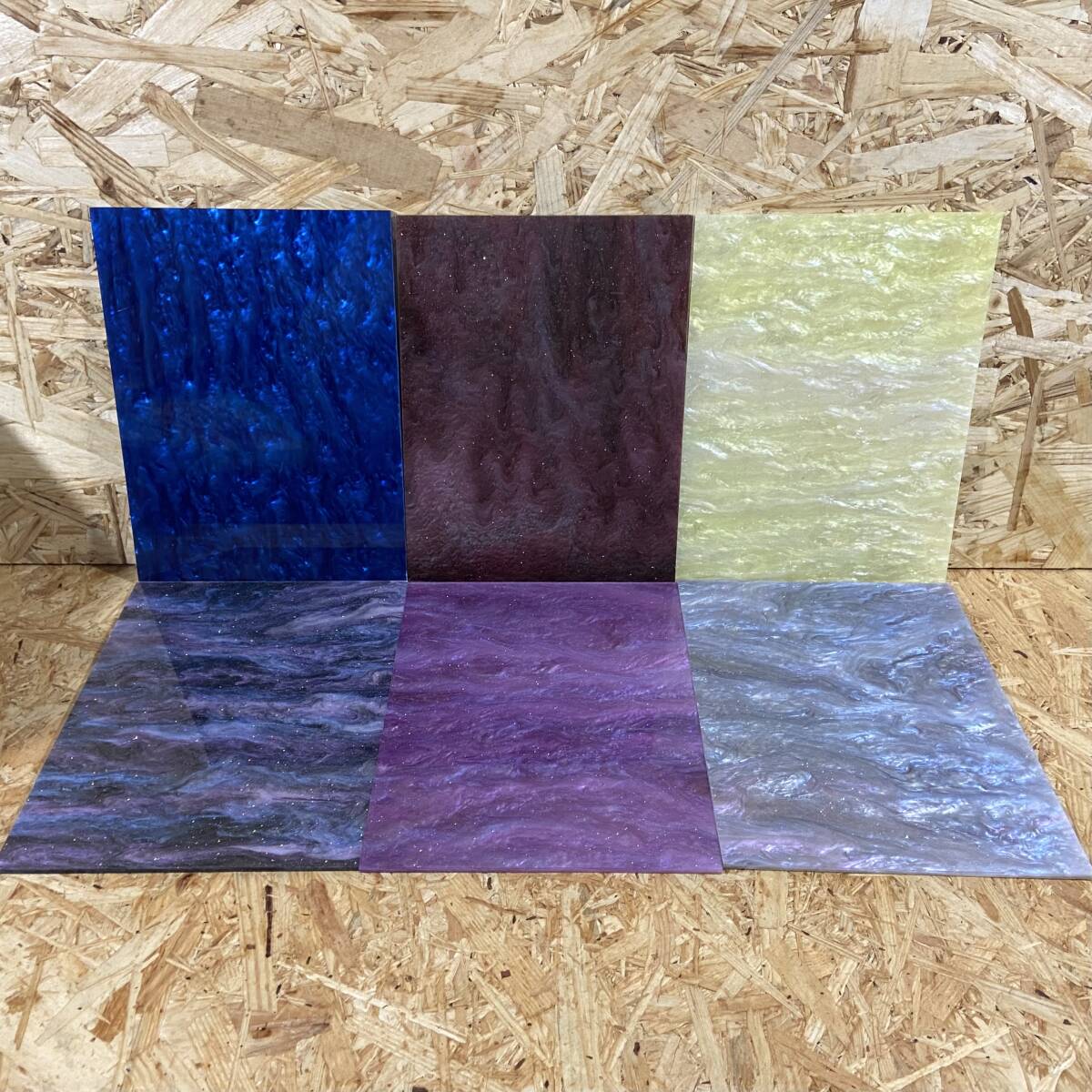 > アクリルパール板 まとめ売り大特価スタート/サービス品 タテ20cmヨコ15cm板6枚 真珠流雲柄/パールベース/マーブル模様/ラメ入り