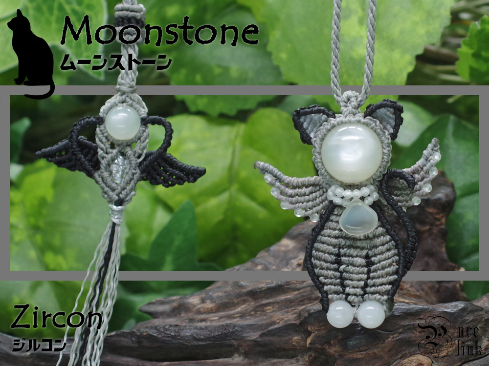 - 猫天使・お顔が『ムーンストーン』な!!猫マクラメ編みネックレス2