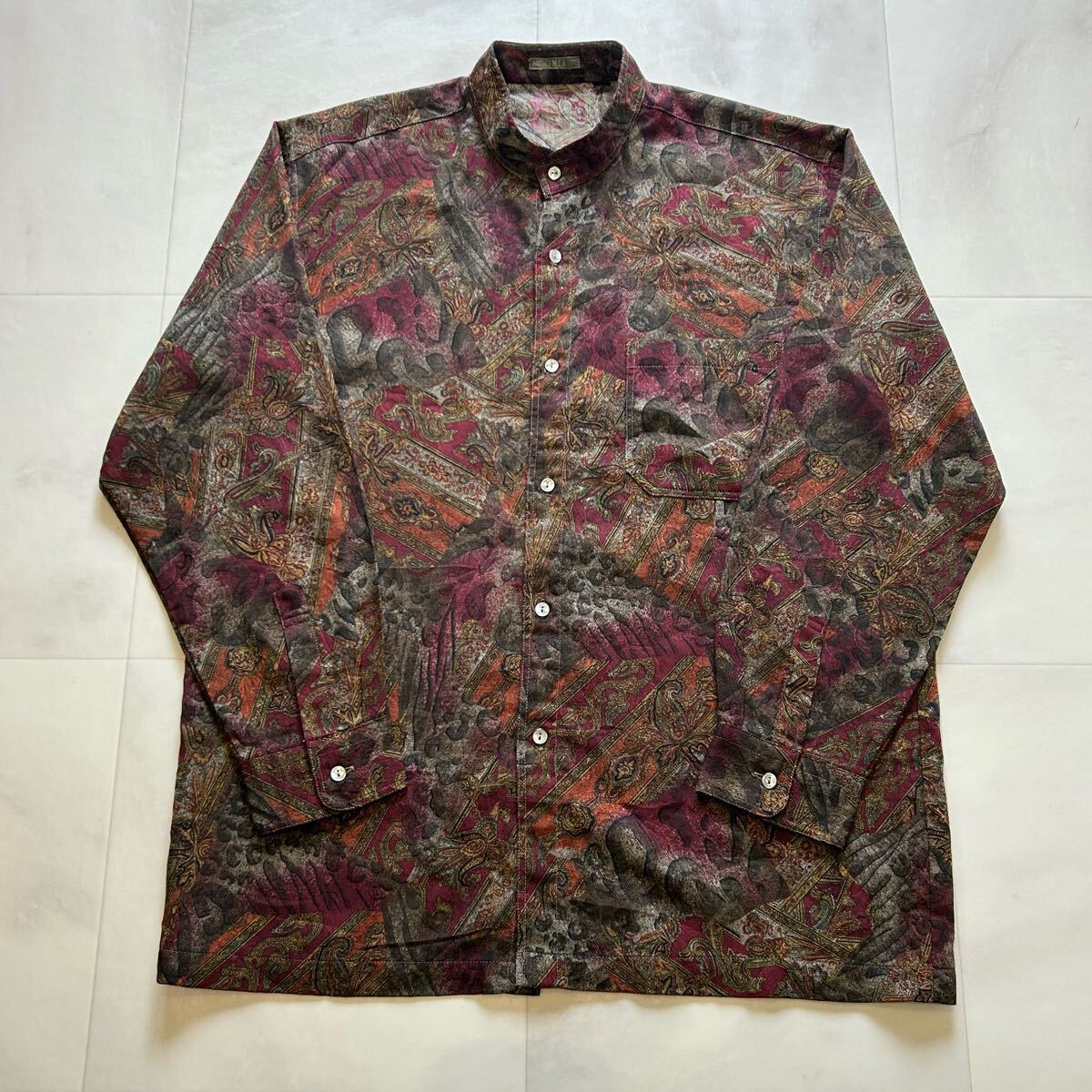 - CIMCA 総柄 柄シャツ ペイズリー 和柄 レトロ アート ビンテージ シャドー 刺繍 長袖シャツ 毛90% ポリエステル10%