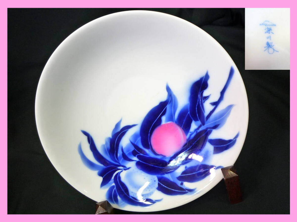 - 宮内庁御用達 深川製磁 深鉢皿 皿 絵皿 桃 もも 桃柄 桃文 桃図 色絵 茶道具 和室 伝統 上品 華美 来客用 有田焼 レア 重厚 逸品 お得 必見