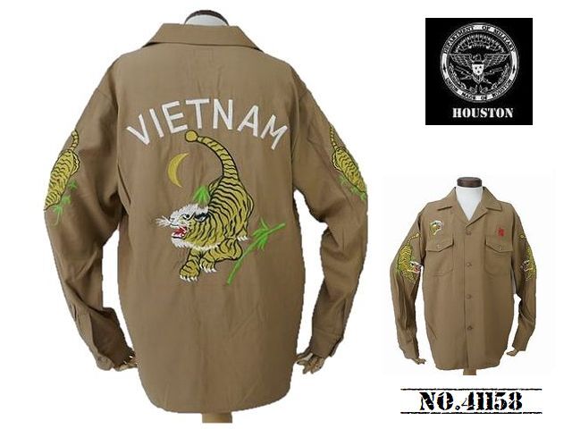 - 【送料無料 30%OFF 】HOUSTON ヒューストン 刺繍スーベニアシャツ 「 VIETNAM TIGER 」柄 NO.41158 COYOTE_Lサイズ