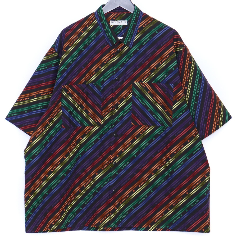 - GIVENCHY チェーンレインボー 半袖シャツ 41 ブラック BM60M213C8 ジバンシィ ジバンシー ロゴ プリント Chain Rainbow Short Sleeve Shirt