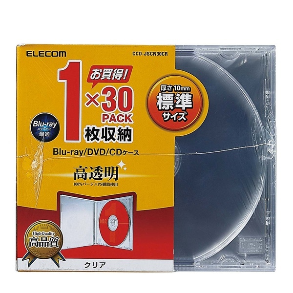 > Blu-ray/DVD/CDケース 1枚収納×30PACK インデックスカードだけでなく背ラベルも収納できる厚さ10.4mmの標準タイプ: CCD-JSCN30CR