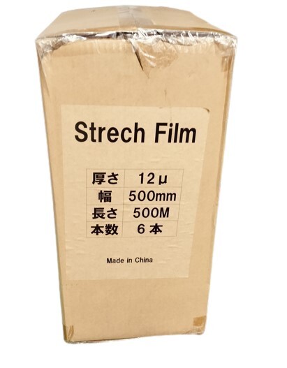 - 手巻用ストレッチフィルム / 12μ(ミクロン) / 幅500㎜ / 長さ500m / 1箱 6巻入【21箱】