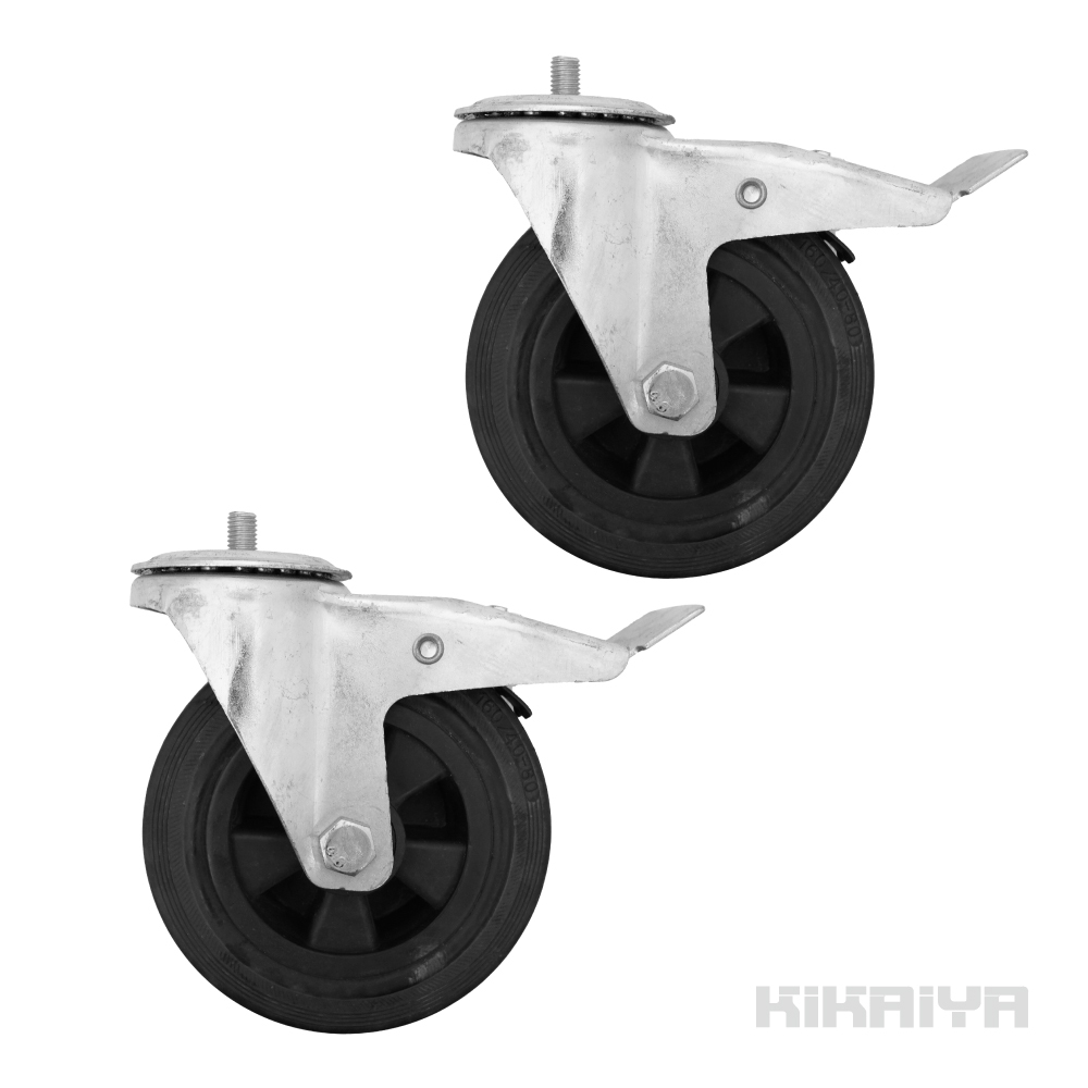 - 自在キャスター ネジ式 ブレーキ付 ゴム車輪 2個セット 160mm ねじ込み式 ボルト M12 ノーパンクタイヤ KIKAIYA
