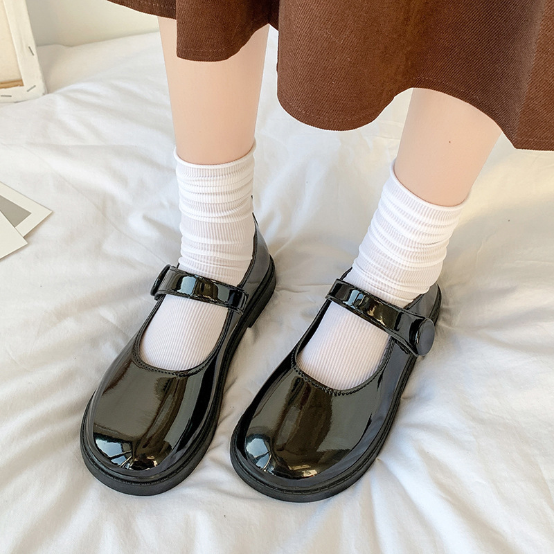 - 新品未使用 マジックテープ メリージェーン靴 シングルシューズ 小さな革靴 【38】24cm ブラック