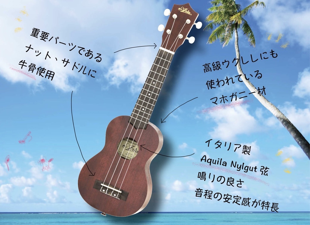 - ウクレレ 初心者 Aria AU-1 質感の良い本格的な入門モデル 牛骨ナット&サドル Aquila弦仕様 ソフトケース付き 送料無料