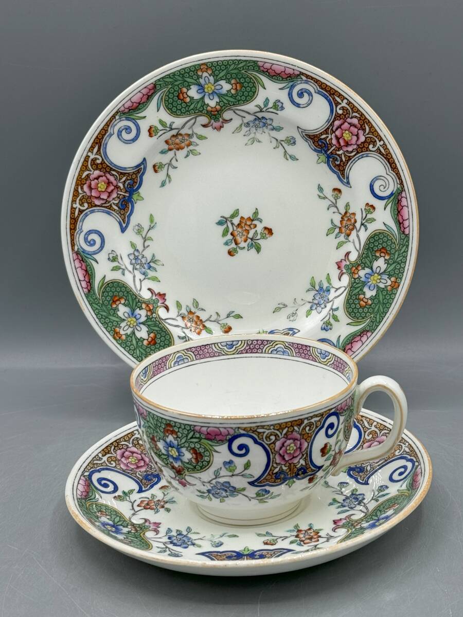 > ミントン トリオ カップ&ソーサー ケーキ皿 シワノズリ エナメル 花 (#-7-B) カップアンドソーサー