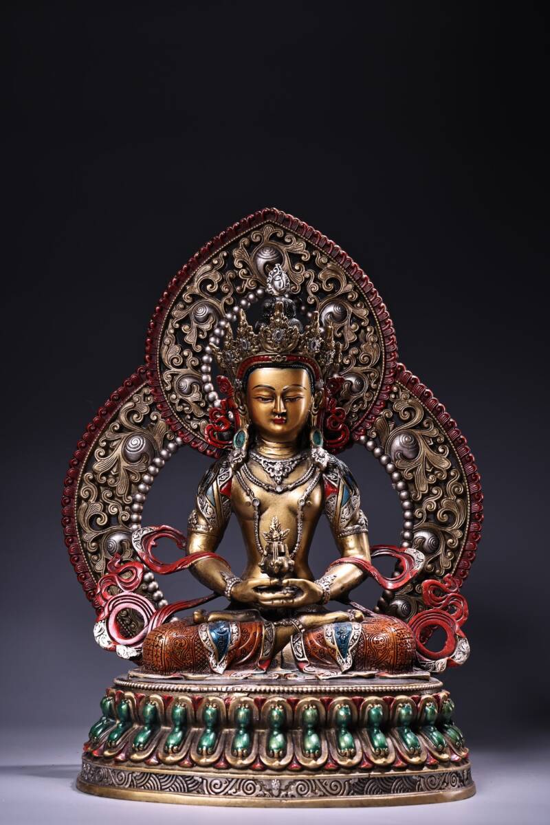 - ▽鴻▽ 銅製 描金 彩繪 長寿仏 仏教古美術 供養品 古賞物 中国古玩 中国古美術
