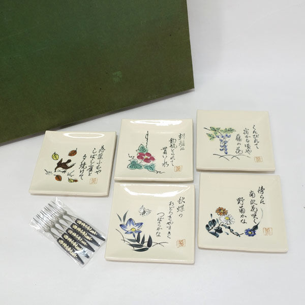 - ★ 美濃焼 翠泉 和食器 美濃焼 絵変わりフォーク付き銘々皿揃(5客) (0220522327)